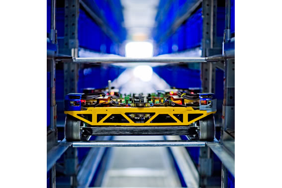 In 2007, Heinrich Amminger and Martin Trummer from Austria had an idea for revolutionizing warehouse logistics. They developed the automated small part warehouse – an intelligent and very environment-friendly logistics system that is winning an increasing number of customers for YLOG, a start-up company located in the town of Dobl close to Graz. Their warehouse logistics principle is easy to describe: The technology makes use of individual, freely moving vehicles (AiVs). The vehicles detect each other, observe right-of-way rules, recognize one-way routes and complete their tasks fully autonomously, without intervention from or coordination by a central computer. By using this new technology, potential for rationalization can be revealed and costs saved. Other areas where robots have a big advantage over traditional systems are the price-performance ratio and energy consumption. Existing systems, even the modern ones, usually use storage and retrieval systems that move back and forth alongside the shelf to deposit and remove goods. YLOG offers the first solution that combines the container logistics of a small part warehouse with a transport system that uses vehicles that can move around freely. This warehouse type is used in 95 percent of all warehouses worldwide.