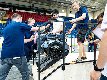 The Cybathlon games are organized by the ETH Zürich and are being held for the first time on October 8, 2016 at the Swiss Arena in Zürich. Around 80 teams from all over the world will be participating. The machine-assisted competitors will compete against one another in six disciplines: prosthetic legs, prosthetic arms, exoskeletons, motorized wheelchairs, bicycles with muscle stimulation, and virtual racing using thought control. What's not allowed at the Paralympics is an absolute must at the Cybathlon: the use of state-of-the-art technology. “Our aim with the Cybathlon is to break down barriers between the general public, people with disabilities, and scientists,” says ETH professor Robert Riener, who invented the Cybathlon.