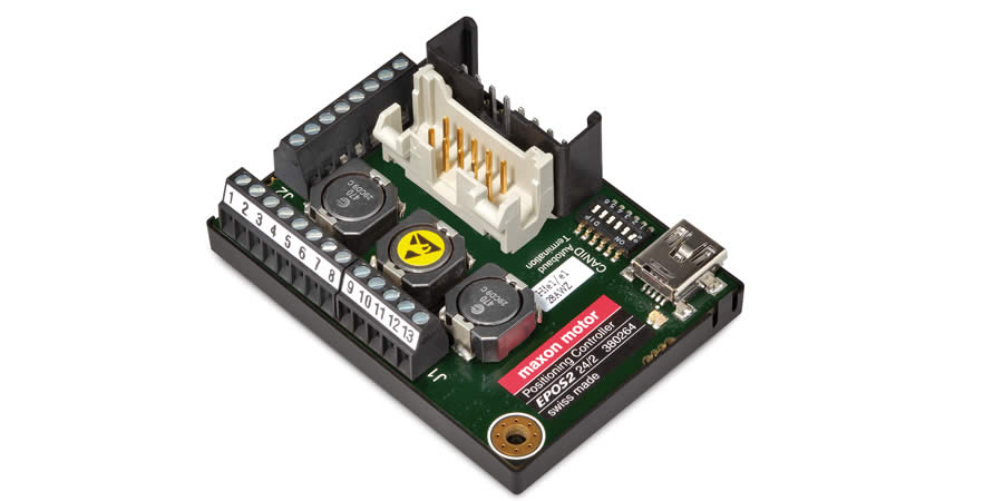 maxon control’s EPOS2 24/2 is a small-sized, full digital, smart motion controller. Due to its flexible and high efficient power stage, the EPOS2 24/2 drives brushed DC motors with digital encoder as well as brushless EC motors with digital Hall sensors and encoder.The sinusoidal current commutation by space vector control offers the possibility to drive brushless EC motors with minimal torque ripple and low noise. The integrated position, velocity and current control functionality allows sophisticated positioning applications. The EPOS2 24/2 is especially designed being commanded and controlled as a slave node in a CANopen network. In addition, the unit can be operated via any USB or RS232 interface.