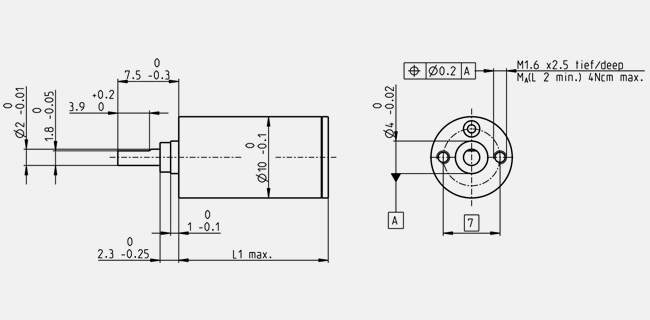 | Radial play | max. 0.14 mm, 5 mm from flange |