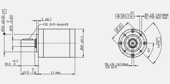 | Radial play | max. 0.1 mm, 8 mm from flange |