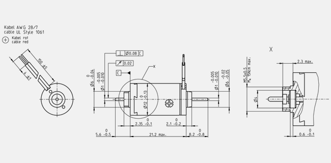 | Max. radial load | 0.4 N, 4 mm from flange |