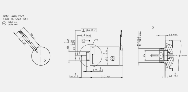| Max. radial load | 0.4 N, 4 mm from flange |