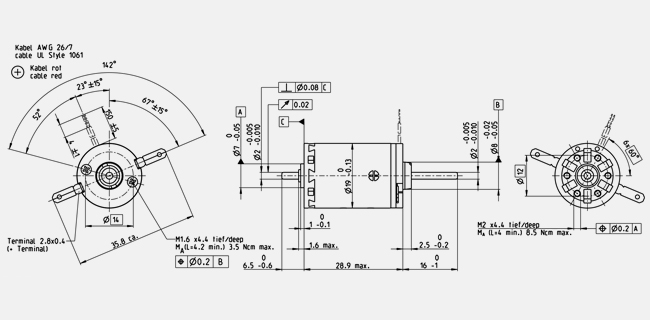| Max. radial load | 2.7 N, 5 mm from flange |