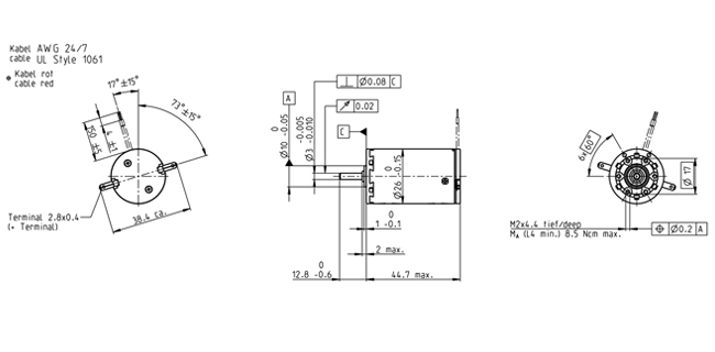 | Max. radial load | 5.5 N, 5 mm from flange |