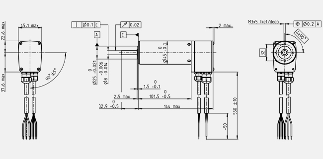 Max. radial load 180 N, 5 mm from flange