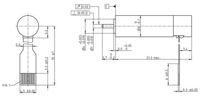 | Max. radial load | 2 N, 2 mm from flange |