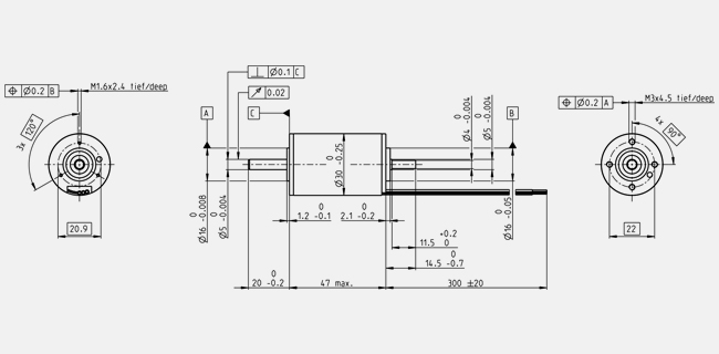 Max. radial load 25 N, 5 mm from flange