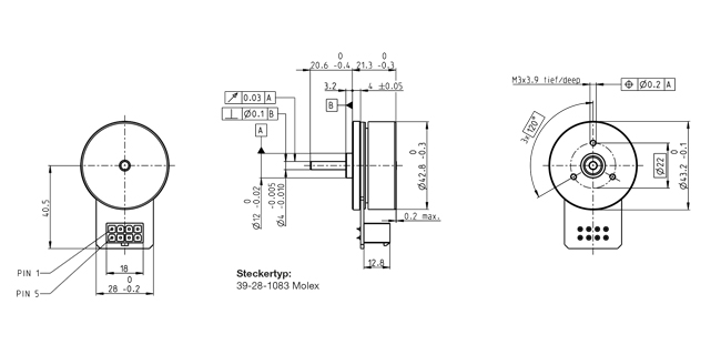 | Max. radial load | 20 N, 5 mm from flange |